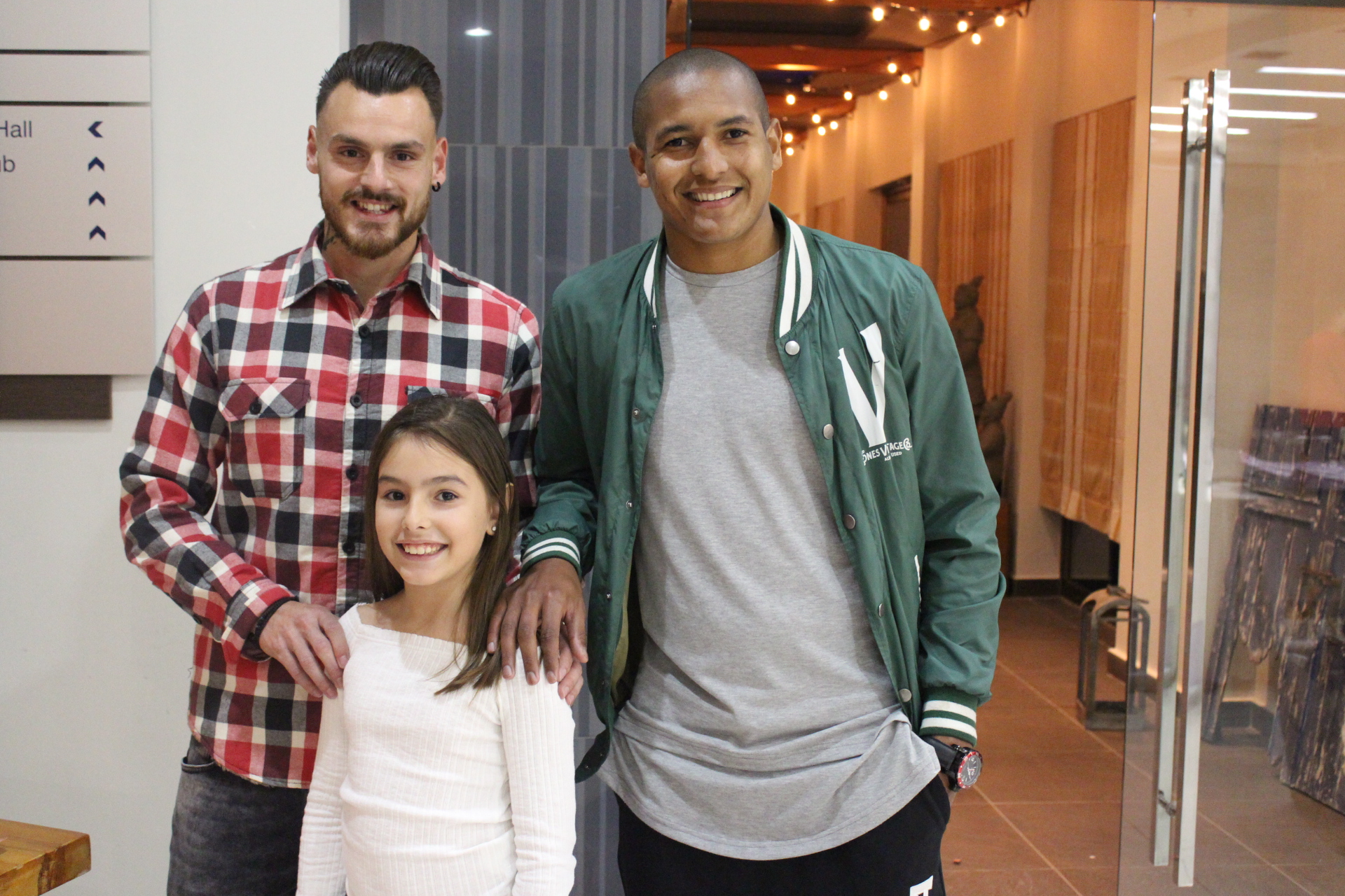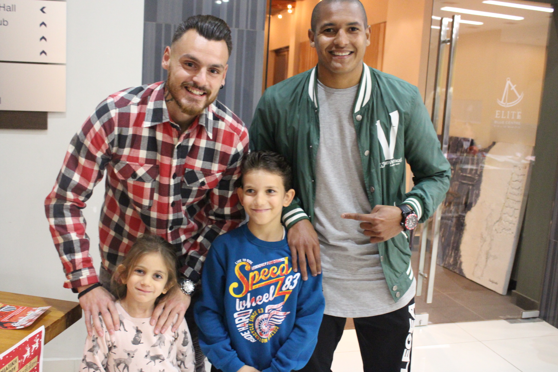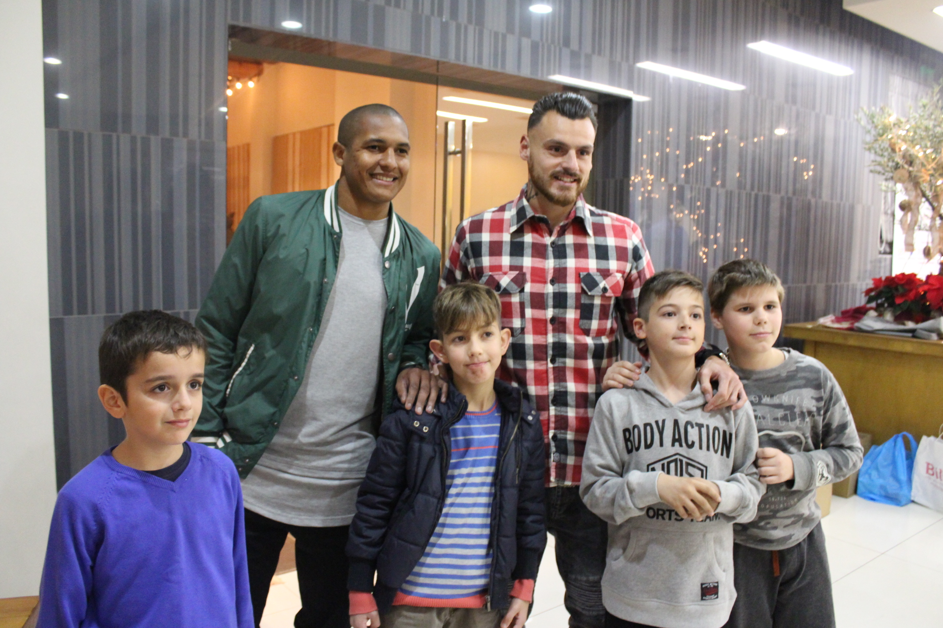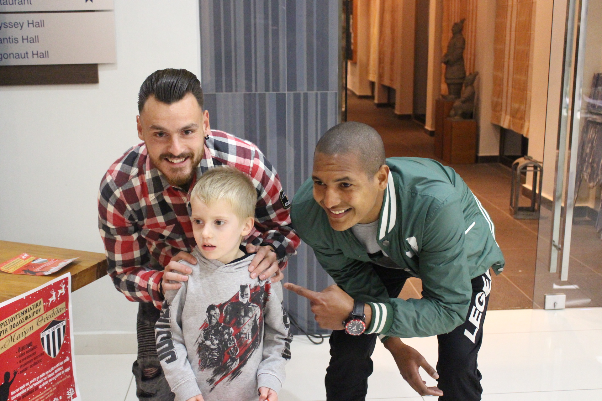 Ευχάριστη στιγμή της βραδιάς ήταν όταν ανέβηκαν στοstage ο Προπονητής της Σχολής Ποδοσφαίρου Π.Σ Η ΚΑΛΑΜΑΤΑ, κ. Μάριος Μπιτσάνης καθώς και οι ποδοσφαιριστές της Μαύρης Θύελλας, της ομάδας της πόλης μας, ο Καλαματιανός Γιάννης Τσόπελαςπου είναι και ένας από τους αρχηγούς της ομάδας και ο Βραζιλιάνος Ρόνι Κάρλος, οι οποίοι φωτογραφήθηκαν μαζί με τα παιδιά!