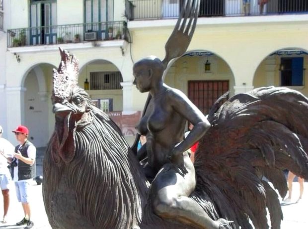 Κούβα: Γυναίκα μόνο με τα τακούνια της κρατάει πιρούνι πάνω σε κόκκορα
