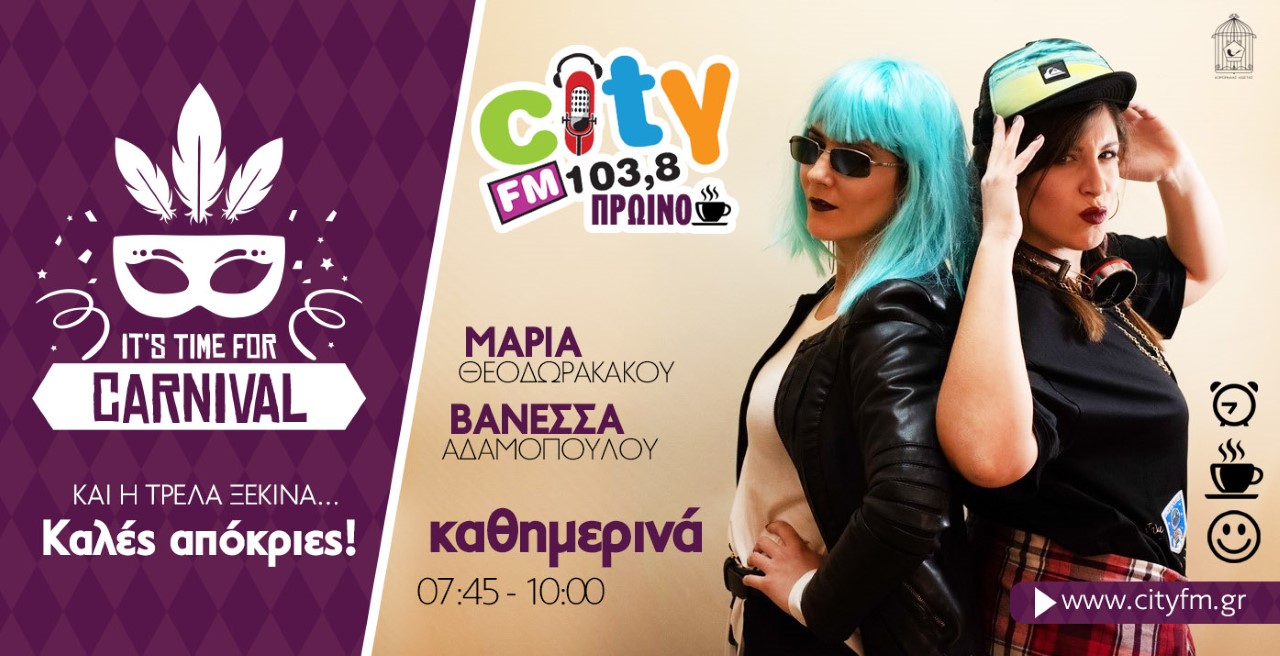 Σε αποκριάτικη ατμόσφαιρα βρίσκεται ο αγαπημένος σας ραδιοφωνικός σταθμός City Fm 103.8  και σας μεταφέρει αυτό το κλίμα όχι μόνο με πολύ μουσική και χαρά αλλά και με την αποκριάτικη φωτογράφιση των ραδιοφωνικών παραγωγών από τον αγαπημένο μας φωτογράφο Κώστα Κορομηλά. Mε ροκ, ποπ αλλά και λαϊκή διάθεση γίνανε για λίγο μουσικοί αστέρες. Και σε αυτή τη φωτογράφιση ο Κώστας Κορομηλάς με επαγγελματισμό αλλά και μοναδικό χιούμορ κατάφερε να απαθανατίσει τις πιο όμορφες στιγμές μας. Αναζητήστε περισσότερες πληροφορίες στο www.koromilask.gr.