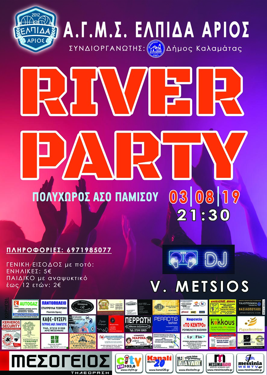 Σάββατο 3 Αυγούστου, διασκεδάζουμε στο River Party στο ΑΣΟ Παμίσου, στον Άρι Μεσσηνίας!