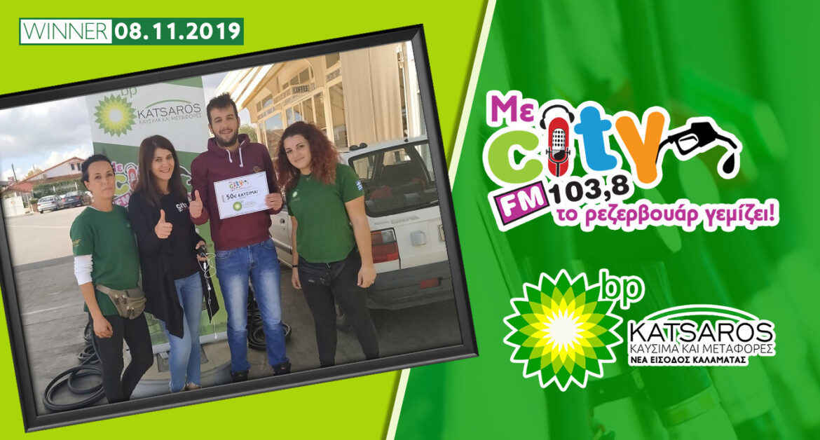 Ο 1ος τυχερός ακροατής του City Fm 103,8 είναι ο Δημήτρης Χρονόπουλος, ο οποίος κέρδισε 50€ καύσιμα από το Katsaros Καύσιμα και Μεταφορές στη Νέα Είσοδο Καλαμάτας την Παρασκευή 8 Νοεμβρίου 2019!
