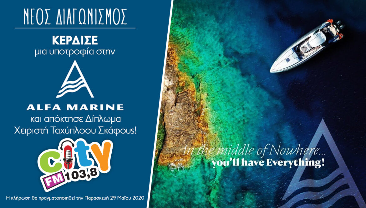 Στη μεγάλη παρέα του City FM 103,8 είναι η ALFA MARINE ACADEMY με ένα μεγάλο δώρο για 1 τυχερό ακροατή!