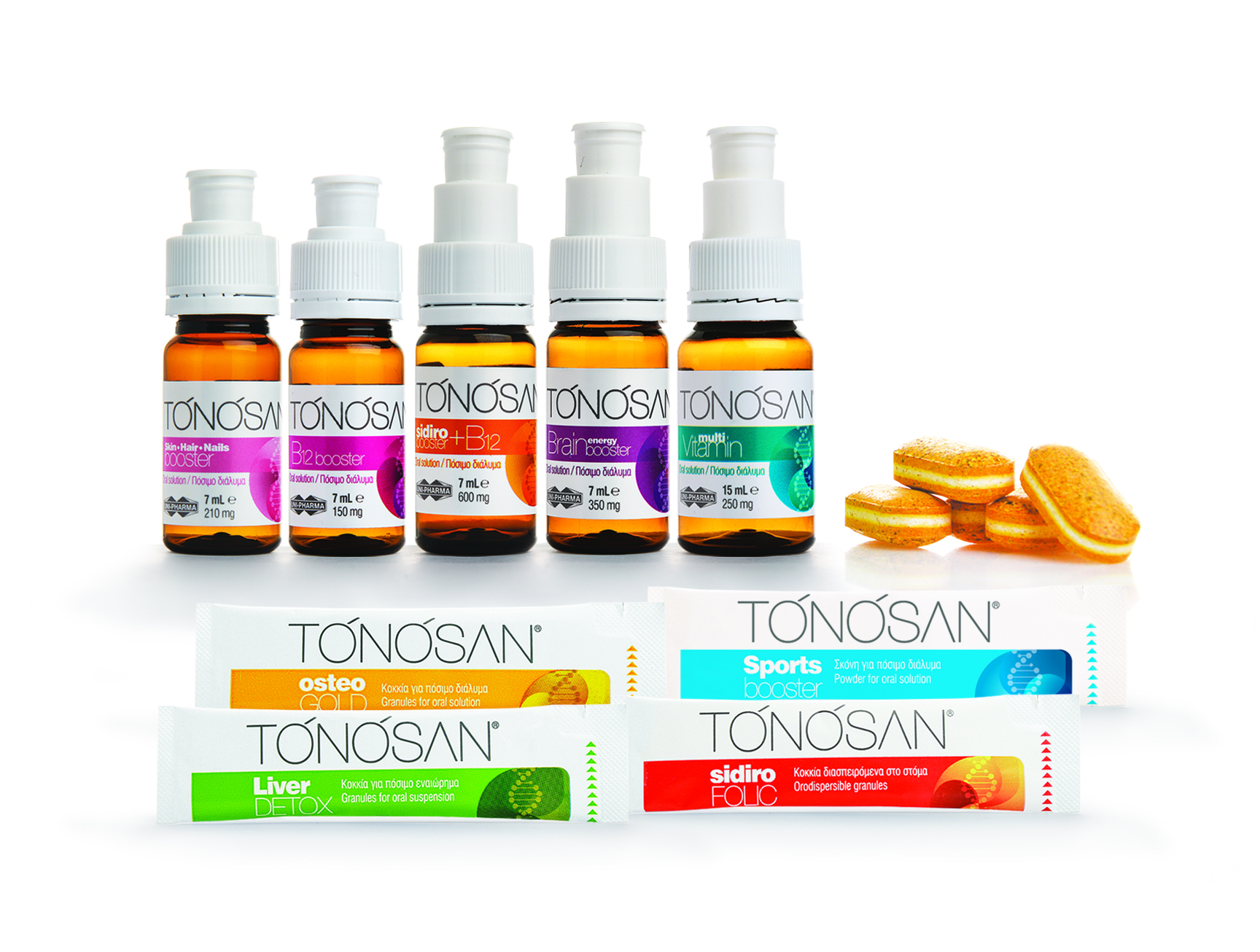 Τα φαρμακευτικά εργαστήρια της Uni-pharma μελέτησαν και ανέπτυξαν την ολοκληρωμένη σειρά συμπληρωμάτων διατροφής ΤONOSAN, με στόχο την κάλυψη σταθερών & περιστασιακών αναγκών του οργανισμού.