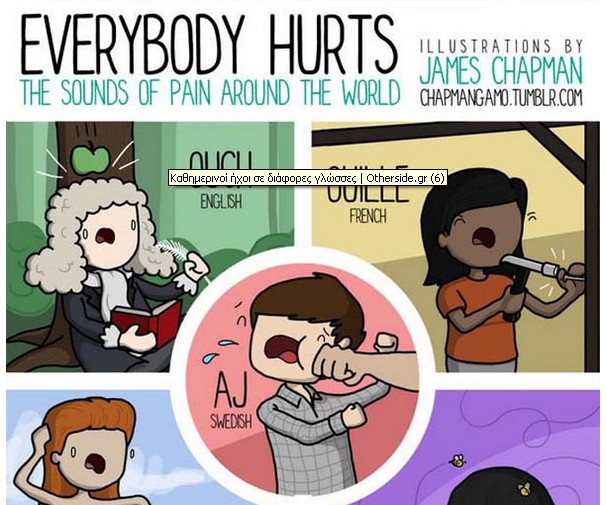 Ο σκιτσογράφος James Chapman μας παρουσιάζει τους διαφορετικούς ήχους που έχει κάθε κουλτούρα για τον πόνο, το ροχαλητό και άλλες καθημερινές δραστηριότητες.