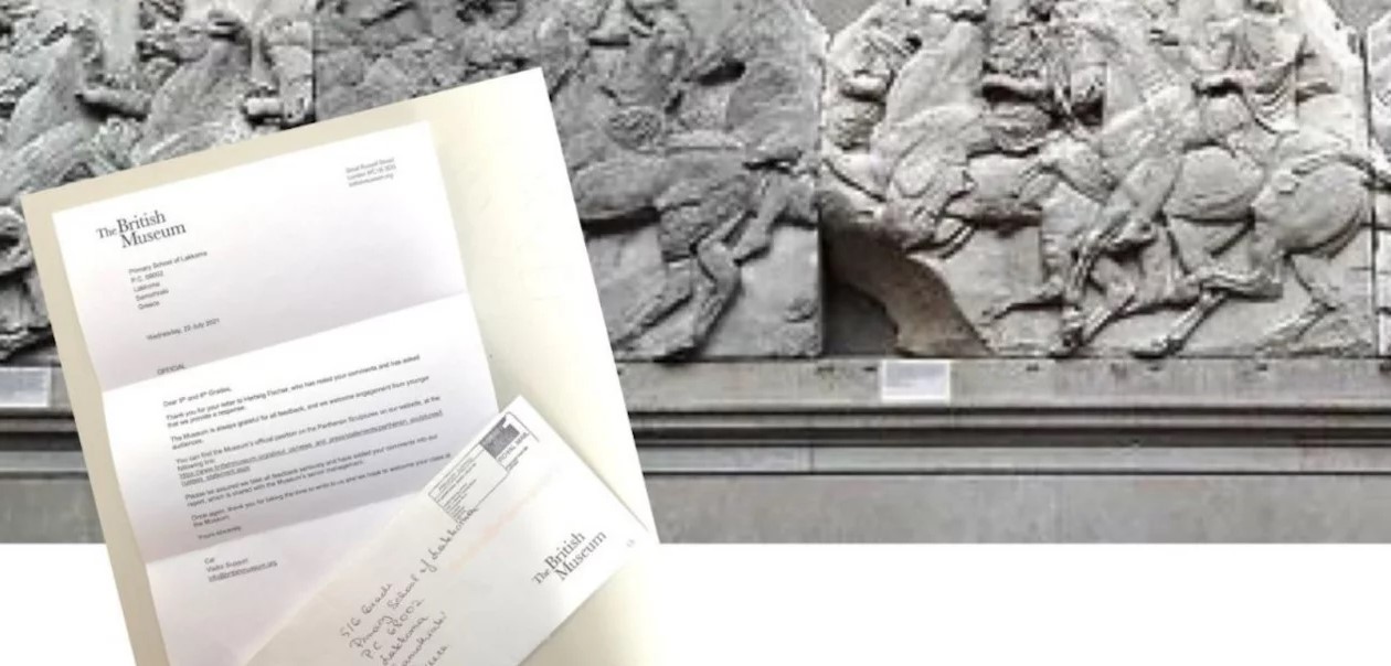 Παρόλο το νεαρό της ηλικίας τους τα παιδιά, μέσω της επιστολής που απέστειλαν το καλοκαίρι στο Βρετανικό Μουσείο, επιχειρηματολόγησαν υπέρ της επιστροφής των Γλυπτών του Παρθενώνα στην Ελλάδα.