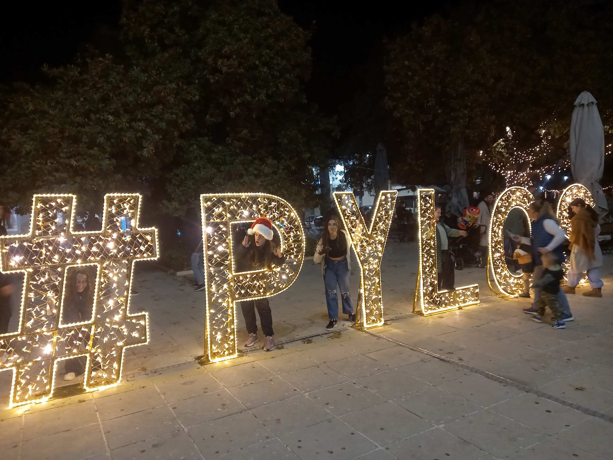 «Χριστούγεννα Ξανά» δέντρο ευχές Πύλος φωταγωγείται φωταγώγηση