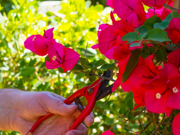 Η βουκαμβίλια μπορεί να κλαδευτεί αρκετά και να επανέλθει με ζωηρούς βλαστούς. Αφαιρέστε τα ξερά κλαδιά και κόψτε τις άκρες για να ενθαρρύνετε τη νέα ανάπτυξη.