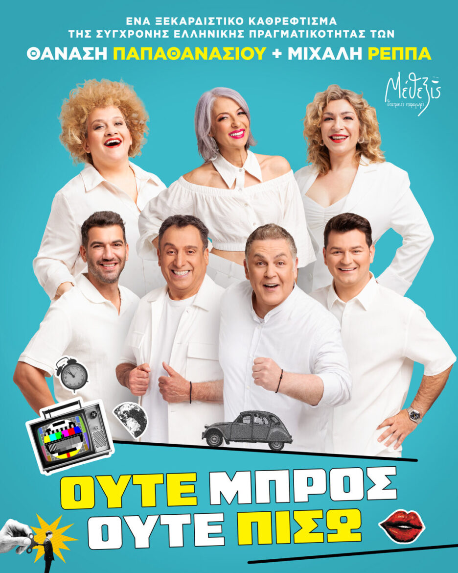 Μετά τη θερμή υποδοχή που γνώρισε στην καλοκαιρινή της περιοδεία, η νέα σατιρική κωμωδία «Ούτε Μπρος ούτε Πίσω» επιστρέφει δυναμικά, φέρνοντας στο προσκήνιο την αστείρευτη πένα των Θανάσης Παπαθανασίου και Μιχάλης Ρέππας. Το συγγραφικό δίδυμο, που έχει χαρίσει στο κοινό μερικές από τις μεγαλύτερες θεατρικές επιτυχίες των τελευταίων δεκαετιών, υπογράφει μια παράσταση που σατιρίζει με οξυδέρκεια και χιούμορ τη σύγχρονη ελληνική πραγματικότητα.
