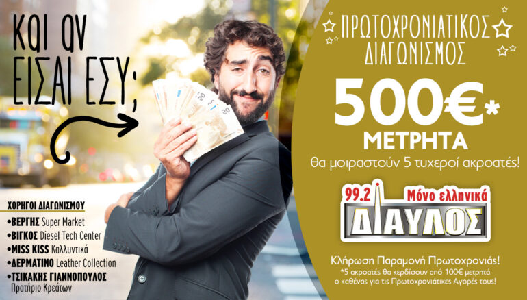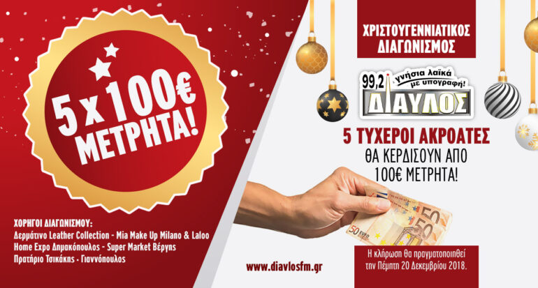 insert_link NEWSFEED Χριστουγεννιάτικος Διαγωνισμός με 500€ μετρητά ΔΩΡΟ στο Δίαυλο 99,2! today15/11/2018 19