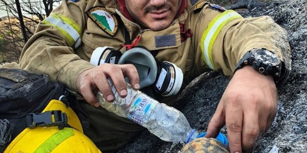 insert_link NEWSFEED Φωτιά στην Αχαΐα: Η viral φωτογραφία με τον πυροσβέστη που δίνει νερό σε χελώνα! today30/07/2021 3