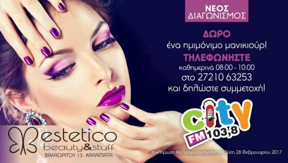 insert_link CITY FM 103.8 Κερδίστε ένα ημιμόνιμο μανικιούρ ΔΩΡΟ από το Estetico Beauty & Stuff! today20/02/2017 11