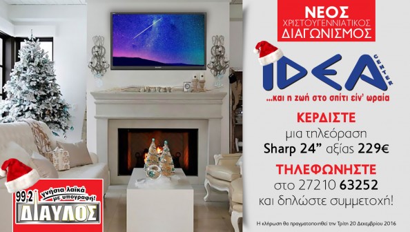 insert_link NEWSFEED Κερδίστε μια τηλεόραση Sharp 24’’ ΔΩΡΟ από το IDEA CENTER και τον Δίαυλο 99,2! today21/11/2016 4
