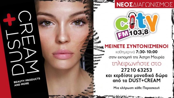 insert_link CITY FM 103.8 Κερδίστε υπέροχα δώρα κάθε Παρασκευή από το Dust and Cream και τον City Fm 103,8! today14/09/2015 2