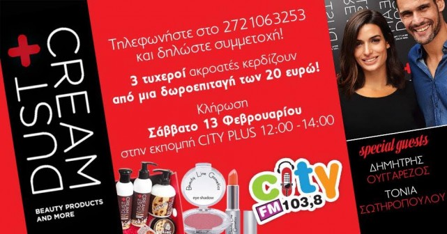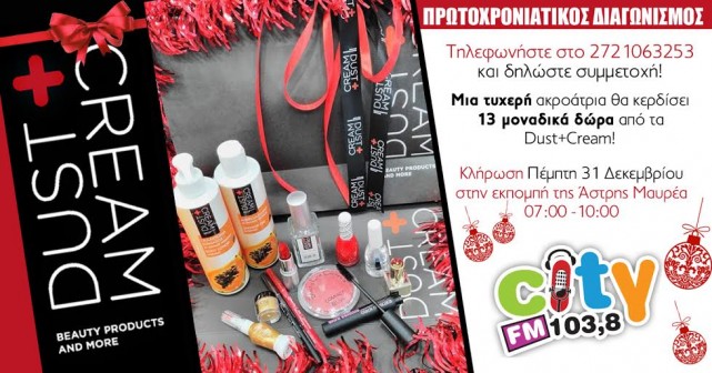 insert_link CITY FM 103.8 Ούτε 1, ούτε 2, ούτε 3.. αλλά 13 δώρα σας κάνει το Dust & Cream και ο City Fm 103,8 ! today16/12/2015 6