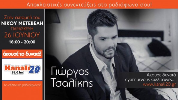 insert_link ΚΑΝΑΛΙ 20 88.6 FM Ο Γιώργος Τσαλίκης μιλά στο Κανάλι 20 88,6 την Παρασκευή 26 Ιουνίου! today26/06/2015 5