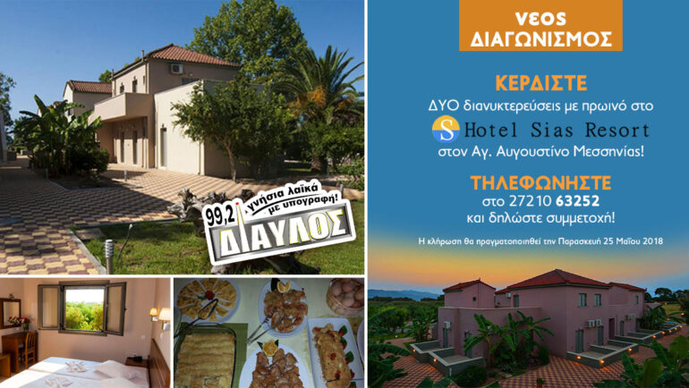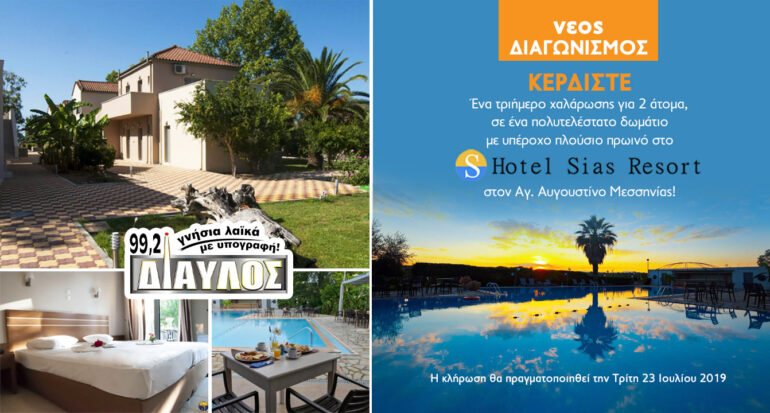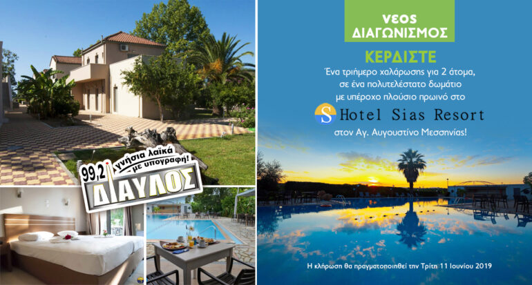 insert_link NEWSFEED Κέρδισε ένα τριήμερο ΔΩΡΟ στο Hotel Sias Resort στον Αγ.Αυγουστίνο Μεσσηνίας! today23/05/2019 4