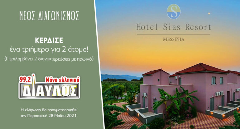 insert_link CITY FM 103.8 Κέρδισε 1 τριήμερο στο HOTEL SIAS RESORT στον Αγ.Αυγουστίνο Μεσσηνίας! today03/06/2021 18
