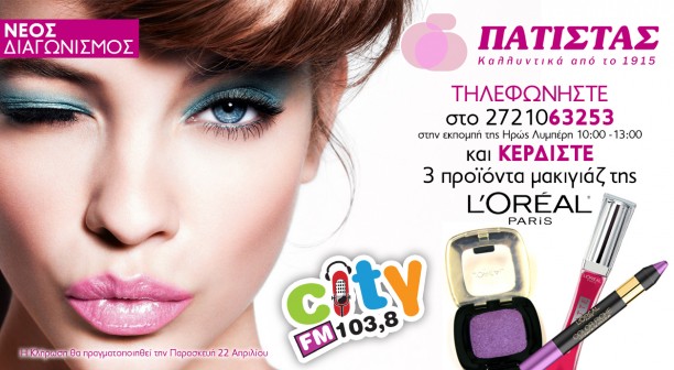 insert_link CITY FM 103.8 Κέρδισε 3 προϊόντα μακιγιάζ της LOREAL από το κατάστημα καλλυντικών Πατίστας και τον City FM 103,8! today04/05/2016 2