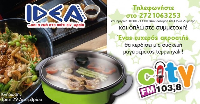 insert_link CITY FM 103.8 Κερδίστε μια συσκευή μαγειρέματος Teppanyaki δώρο από το Idea Center και τον City Fm 103.8! today21/12/2015 6