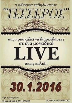 insert_link EVENTS Διασκέδαση όπως παλιά στις 30 Ιανουαρίου στον Τέσσερο στη Θουρία! today26/01/2016 6