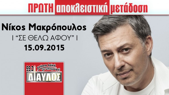 insert_link ΔΙΑΥΛΟΣ 99.2 Νίκος Μακρόπουλος “Σε Θέλω Αφού” | Το ακούτε σε Πρώτη Αποκλειστική Ραδιοφωνική Μετάδοση στον Δίαυλο 99,2! today16/09/2015 11