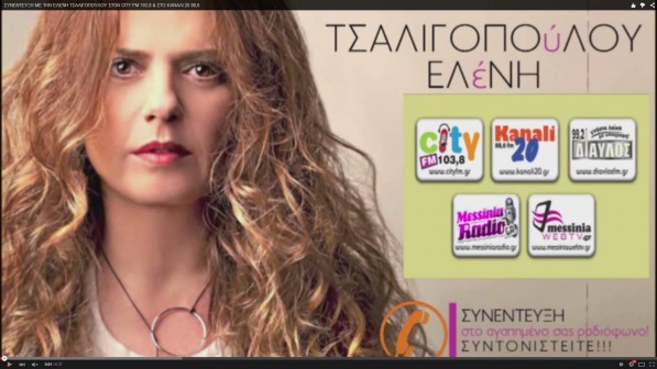 insert_link CITY FM 103.8 ΑΠΟΚΛΕΙΣΤΙΚΑ Η Ελένη Τσαλιγοπούλου μιλά στα αγαπημένα σας ραδιόφωνα City Fm 103,8 & Kανάλι 20 88,6 today17/04/2015 3