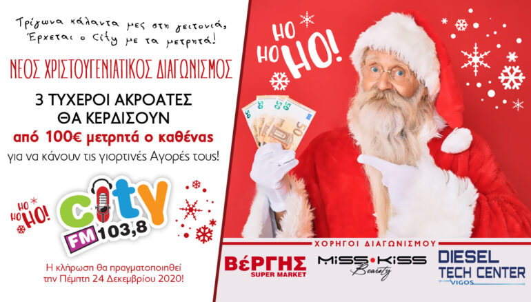 insert_link CITY FM 103.8 Μεγάλος ΧΡΙΣΤΟΥΓΕΝΝΙΑΤΙΚΟΣ Διαγωνισμός στο CITY FM 103,8! today07/12/2020 2