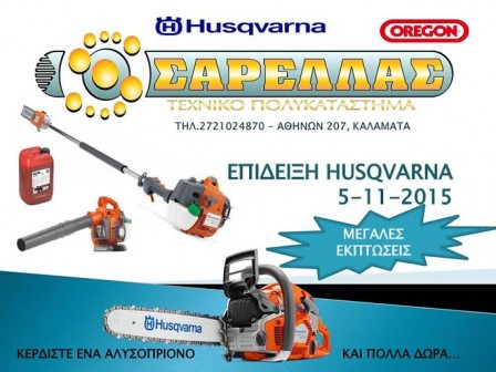 insert_link NEWSFEED Επίδειξη μηχανημάτων Husqvarna στο τεχνικό πολυκατάστημα ΣΑΡΕΛΛΑΣ στις 5 Νοεμβρίου! today29/10/2015 13