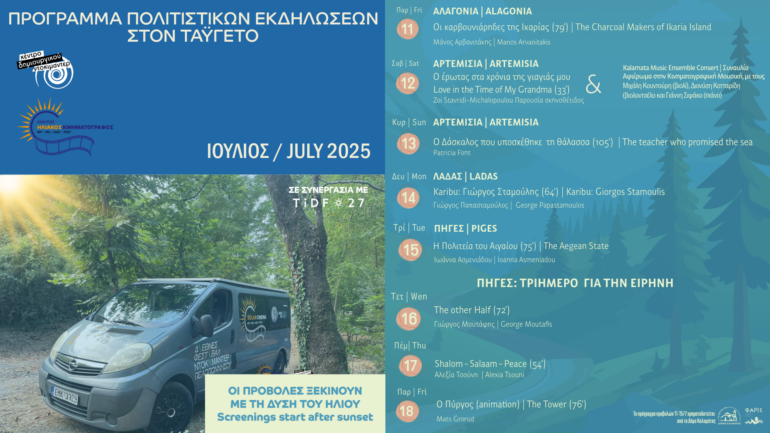 insert_link Art and Culture Το Solar Cinema του Κέντρου Δημιουργικού Ντοκιμαντέρ Καλαμάτας ταξιδεύει στον Ταΰγετο! today08/07/2025 30