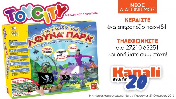 insert_link ΔΙΑΓΩΝΙΣΜΟΙ Κερδίστε μια δωροεπιταγή αξίας 20€ για παιχνίδια, από το Toy City και το Κανάλι 20 88,6! today20/07/2016 9