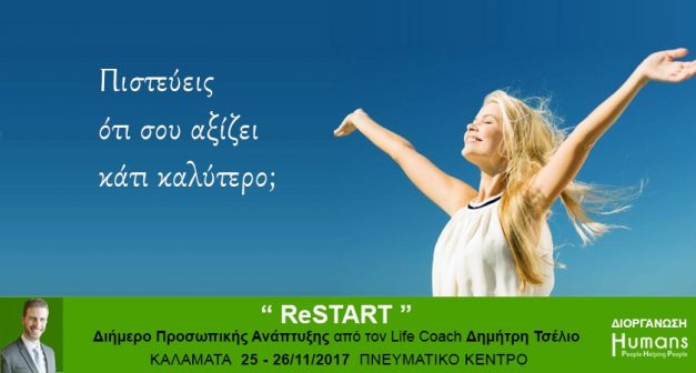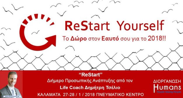 insert_link EVENTS Τρίωρο βιωματικό σεμινάριο με τον Life Coach Δημήτρη Τσέλιο στην Καλαμάτα! today14/03/2018 12